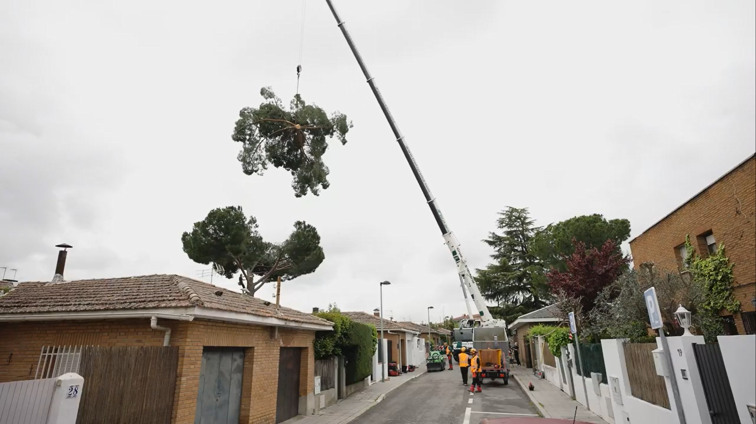 De eigenaars van een woonhuis in Madrid stonden voor een uitdagende situatie: een grote den groeide dwars door het midden van hun woning. Omdat dit de structurele integriteit van het gebouw en de omliggende huizen bedreigde, moest de boom zorgvuldig worden verwijderd.