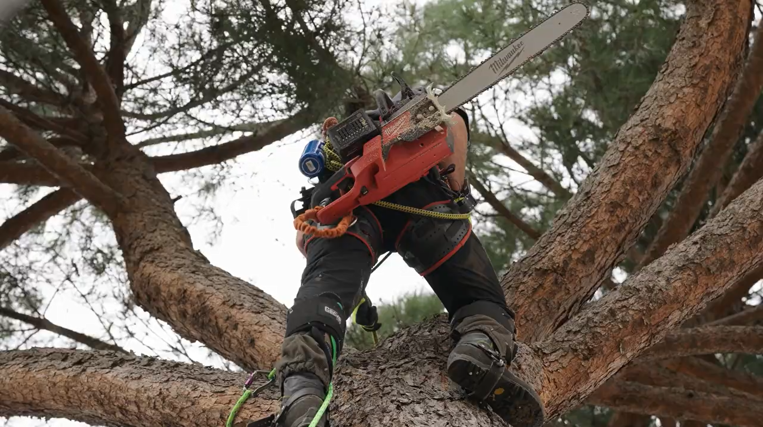 “Vandaag hebben we de MILWAUKEE® dual battery, rear handle kettingzaag gebruikt. Een 50 cm uitgebalanceerde zaag. De grootste voordelen waren de communicatie (door de stille werking) en de lagere vibraties. Maar vooral de communicatie en het ontbreken van uitlaatgassen toen we binnen werkten. (…) Dat was cruciaal. Geen uitlaatgassen was echt een verademing.”