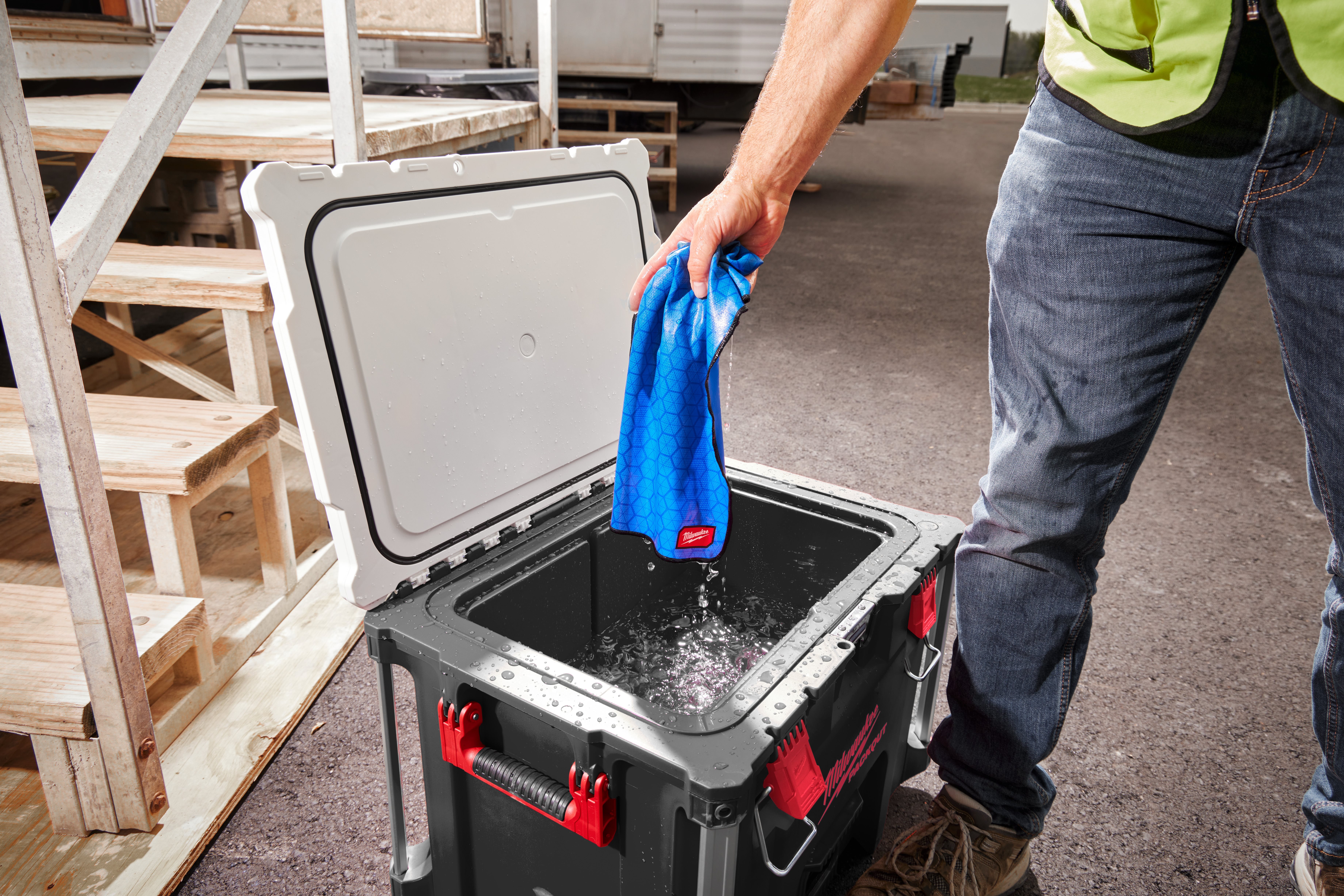 • Week de handdoek in water en wring het overtollige water uit om het verkoelende effect te activeren.